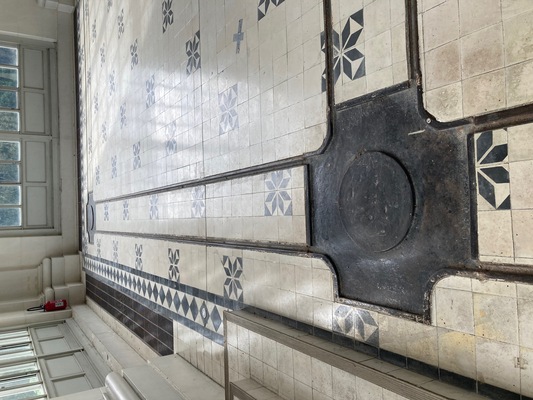 工場で働く人たち用の水飲み場のタイルは、パリのメトロとお揃い^^同じメーカーによるものだそうです。